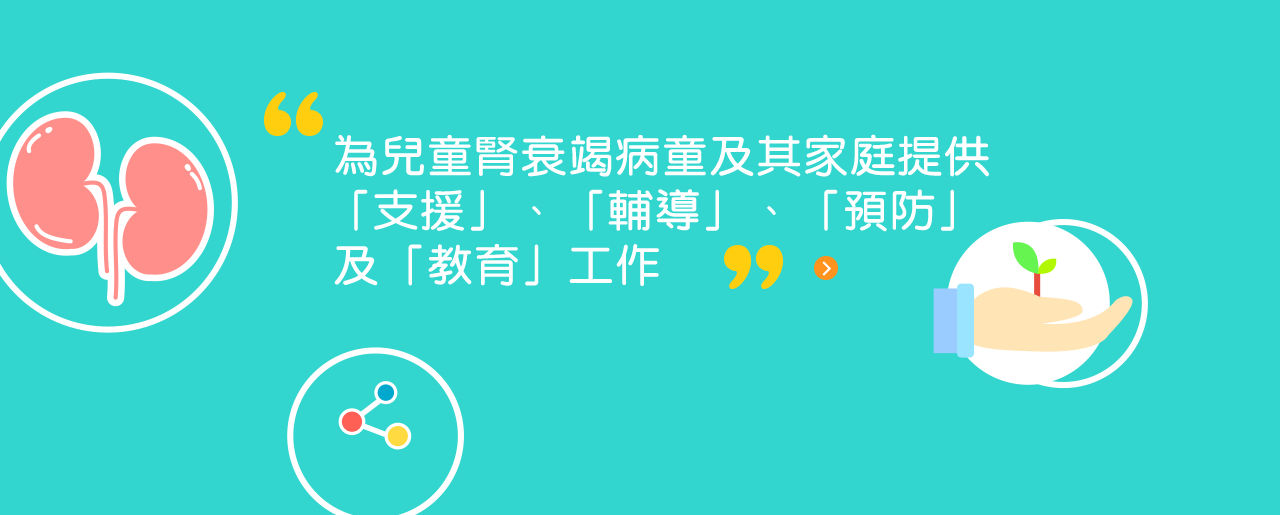 香港腎衰竭病童互助會官方網站正式上線,本會將繼續加強會員間的聯繫及提高大眾市民對腎病的認知。而由於兒童及青少年處於成長的階段,會經歷身心變化及社會環境轉變,使他們面對著很多的挑戰,若加上患上腎病會使他們面對的挑戰變得更為艱巨。本會將著重對患腎病的兒童及其家庭的心靈支援和協助,並設立專業心靈支援服務、生涯規劃及心理輔導等,與會員攜手面對挑戰。