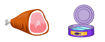 醃製品:如火腿、香腸、肉乾、肉鬆、鹹魚、皮蛋、鹹蛋、魚旦等。